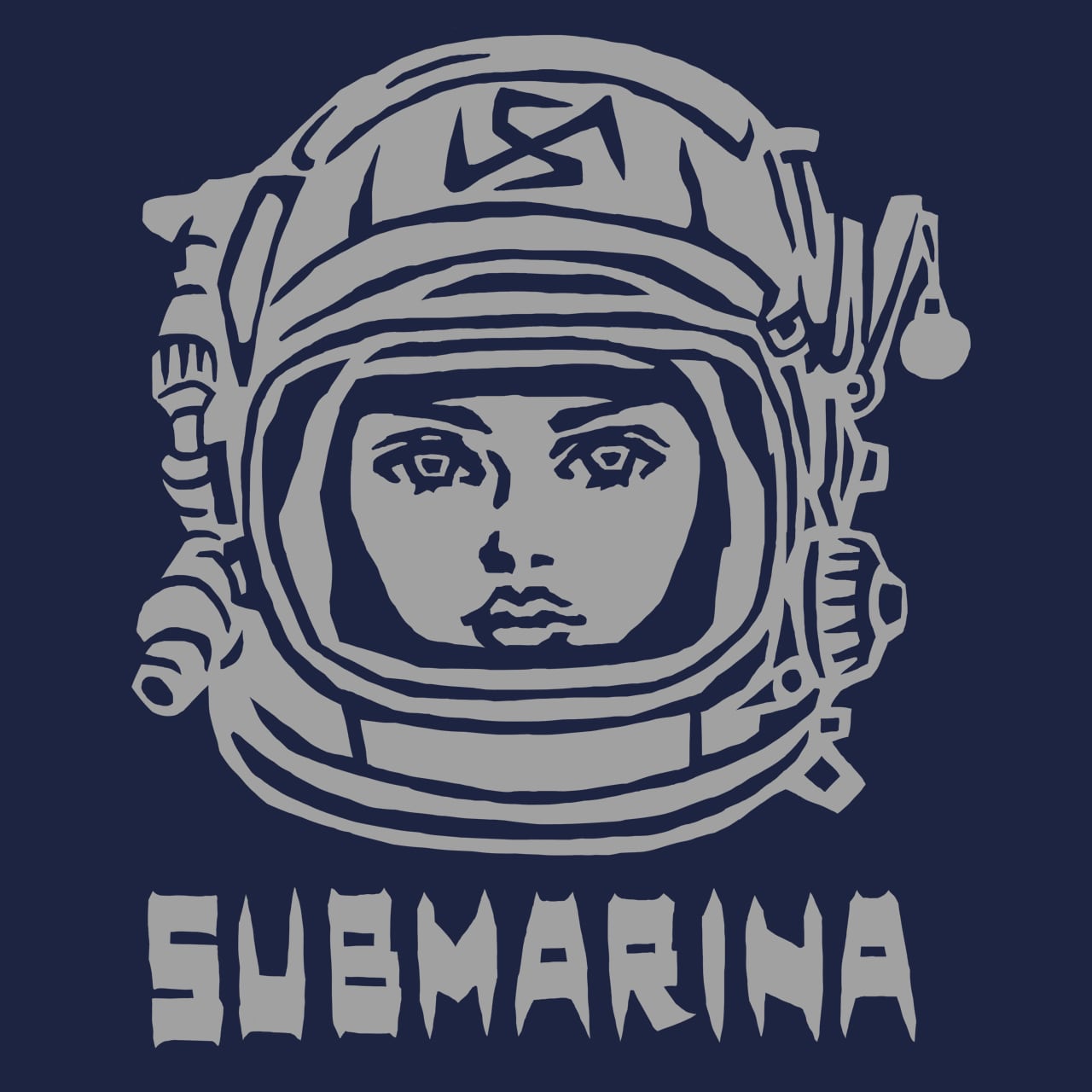 スタンダードなシルエットのTシャツに、潜水服を着た女性の頭部がシルクスクリーンでくっきりとプリントされています。