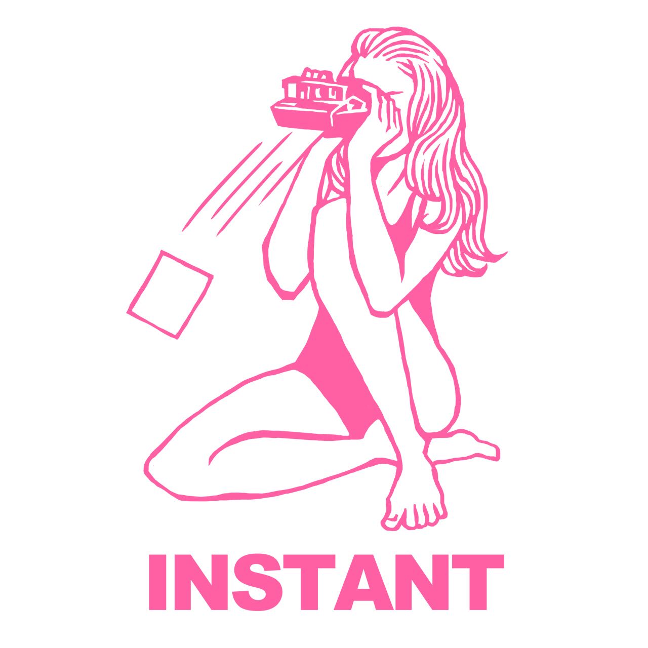スタンダードなシルエットのTシャツに、ポラロイドを構えた女の子がプリントされています。