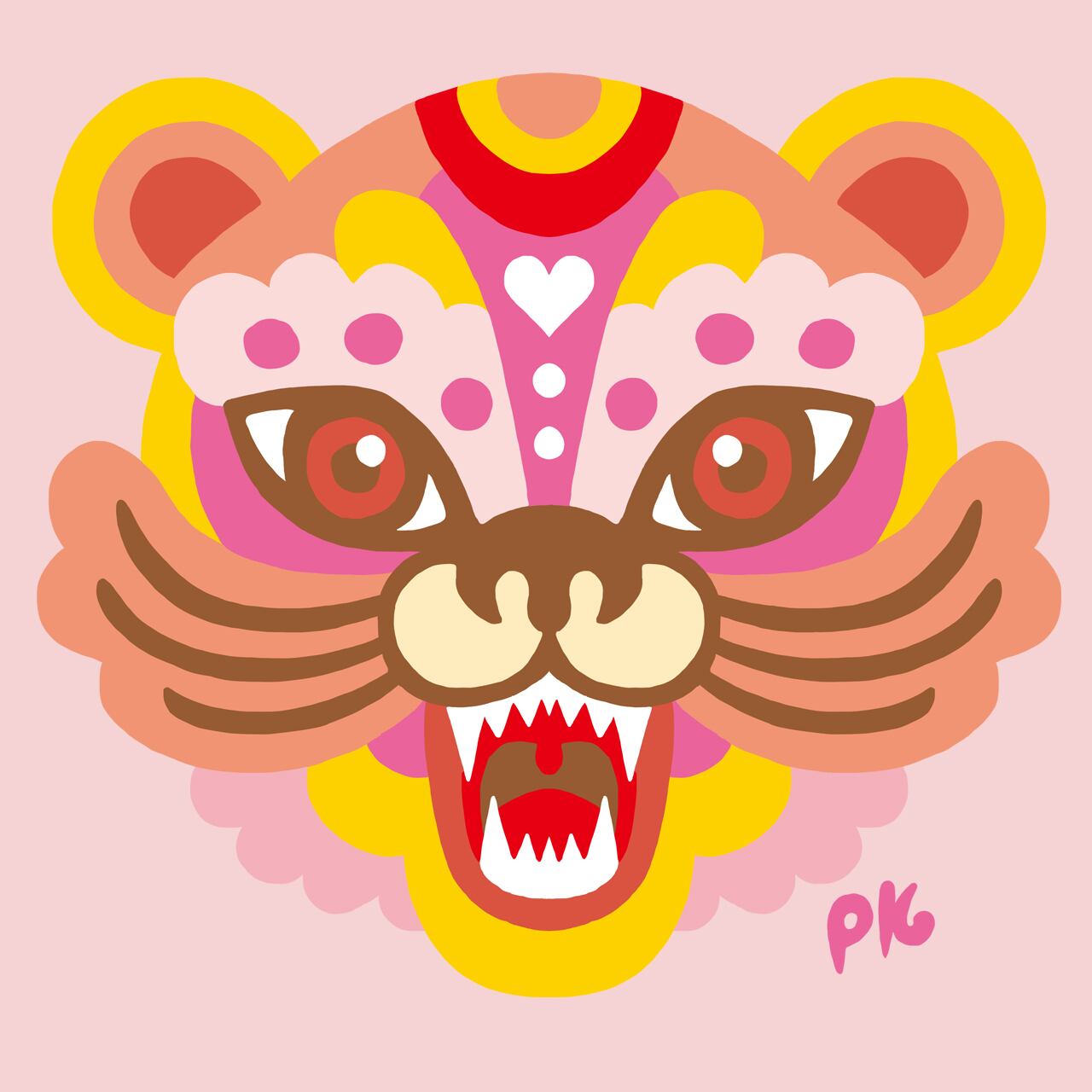 キュートな雌の虎(ティグレス)の顔がにっこりプリントされています。